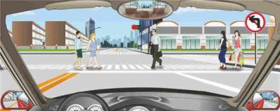 7、Which of the following is a safe way for motor vehicles to pass the intersection marked with this sign?