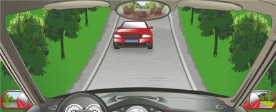 34、图中所示的情形超车时,要提前开启左转向灯,连续鸣喇叭或开启远光灯提示,催促前车让行。