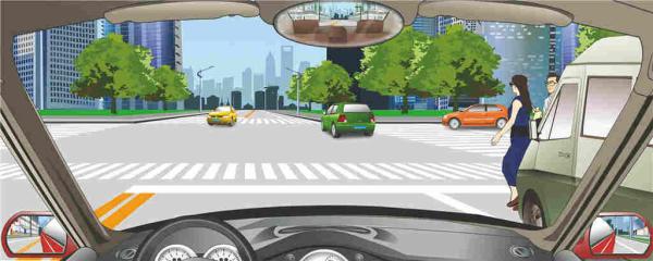 分析:由图可知,有行人正从人行横道线上横穿道路,而机动车已临近人行横道线,此时应停车让行,以免相撞,因此本题错误。
