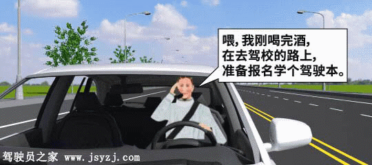分析:有3种违法行为:1、开车打电话;2、酒后驾驶;3、无证驾驶。通过驾驶人打电话时的内容来体现是酒后驾驶,无证驾驶,驾驶人电话内容为:“刚喝完酒,在去驾校的路上,准备报名学个驾驶本”!